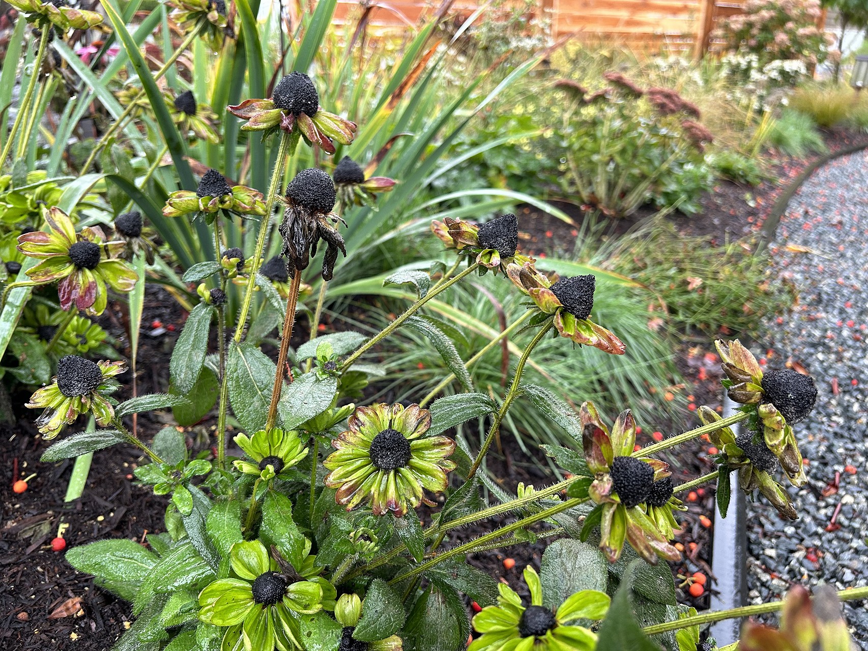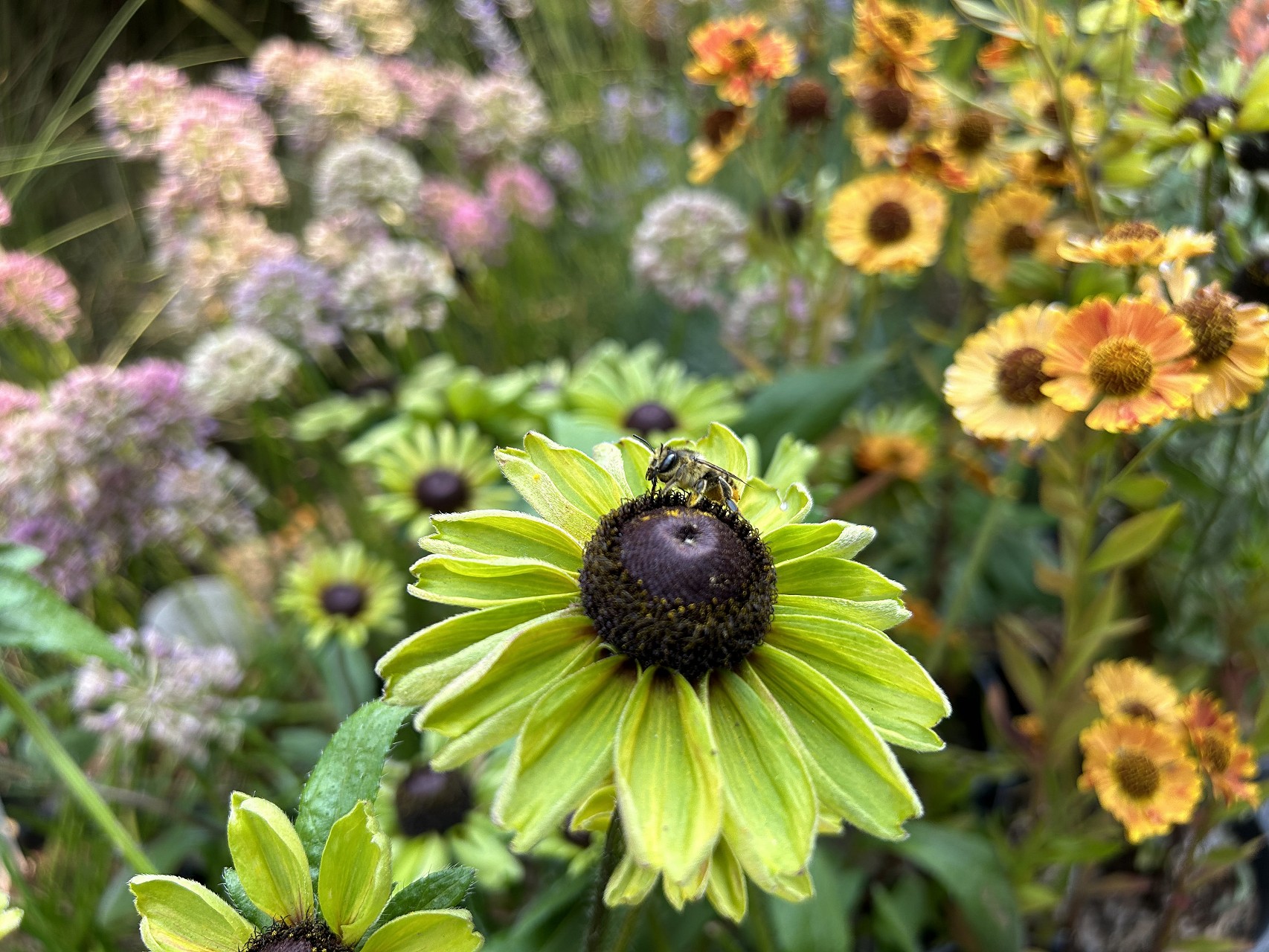 Working with only a single species at a time during the layout (remember, there was no plan!) meant we were guaranteed to have that necessary repetition of key species, tying the gardens together. The diversity in the garden and asymmetrical distribution of some highly visual species provides movement and balance. We chose many species that had airy flowers and seed heads, so they would really move in the breeze.