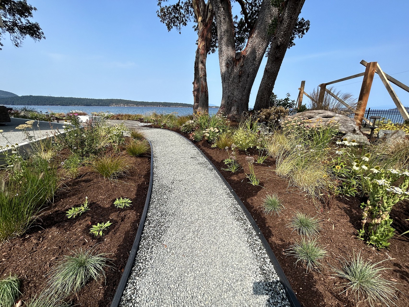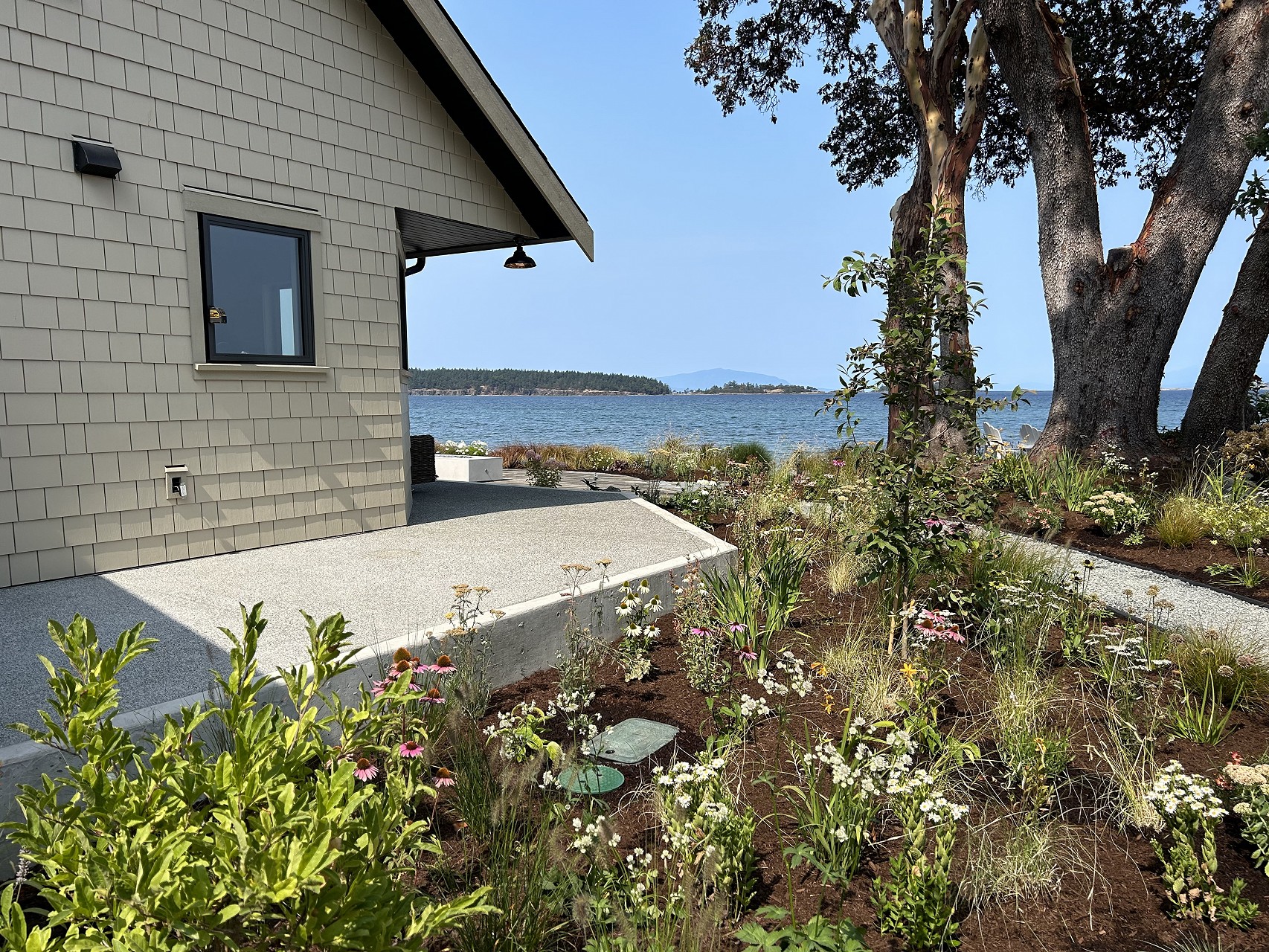 Inspiration for this site was rooted in the ocean, the large arbutus, the existing gardens, and the client’s tasteful requests for the planting.