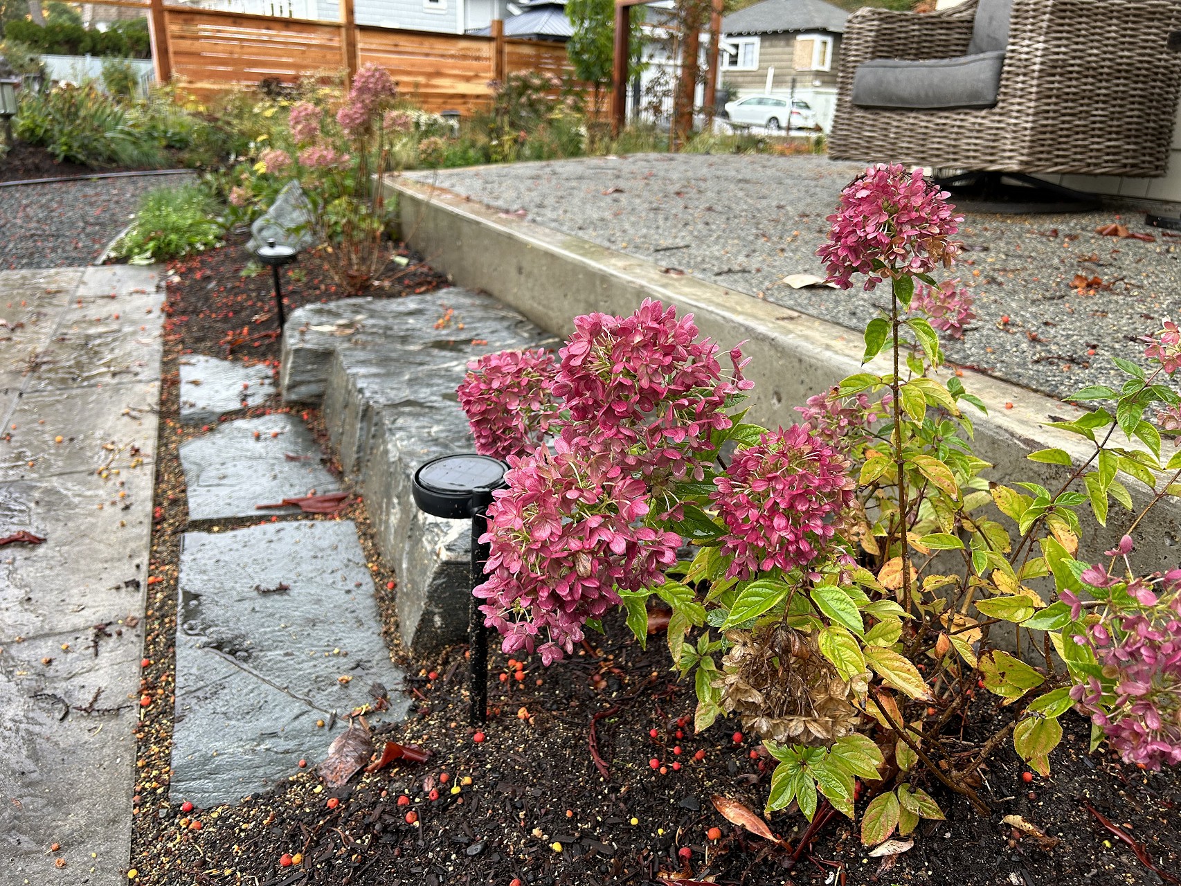 The main garden linked the front entry with back patio, and we worked in some additional planting in the shade at the back of the house. We had a very tight timeline, so there was no formal design with this one. We had a budget, a concept plan, and a wedding to be ready for.